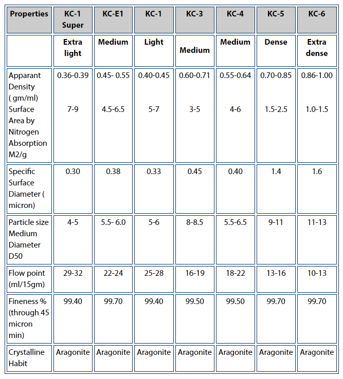 These grades of precipitated calcium carbonate are fine white power of Aragonitic structure with different particle size distribution & apparent densities.